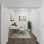 When it is time to focus, the study tucked behind folding doors gives you the quiet corner you need. It is a space that adapts to a home office, a dressing room, or simply a place to tuck away the extras of life. The bedroom offers built-in storage and a restful feel, while the bathroom is designed with clean lines, a wide shower and a floating vanity that keeps everything feeling open and fresh. Even the laundry is thoughtfully integrated, complete with dryer.
