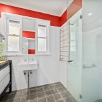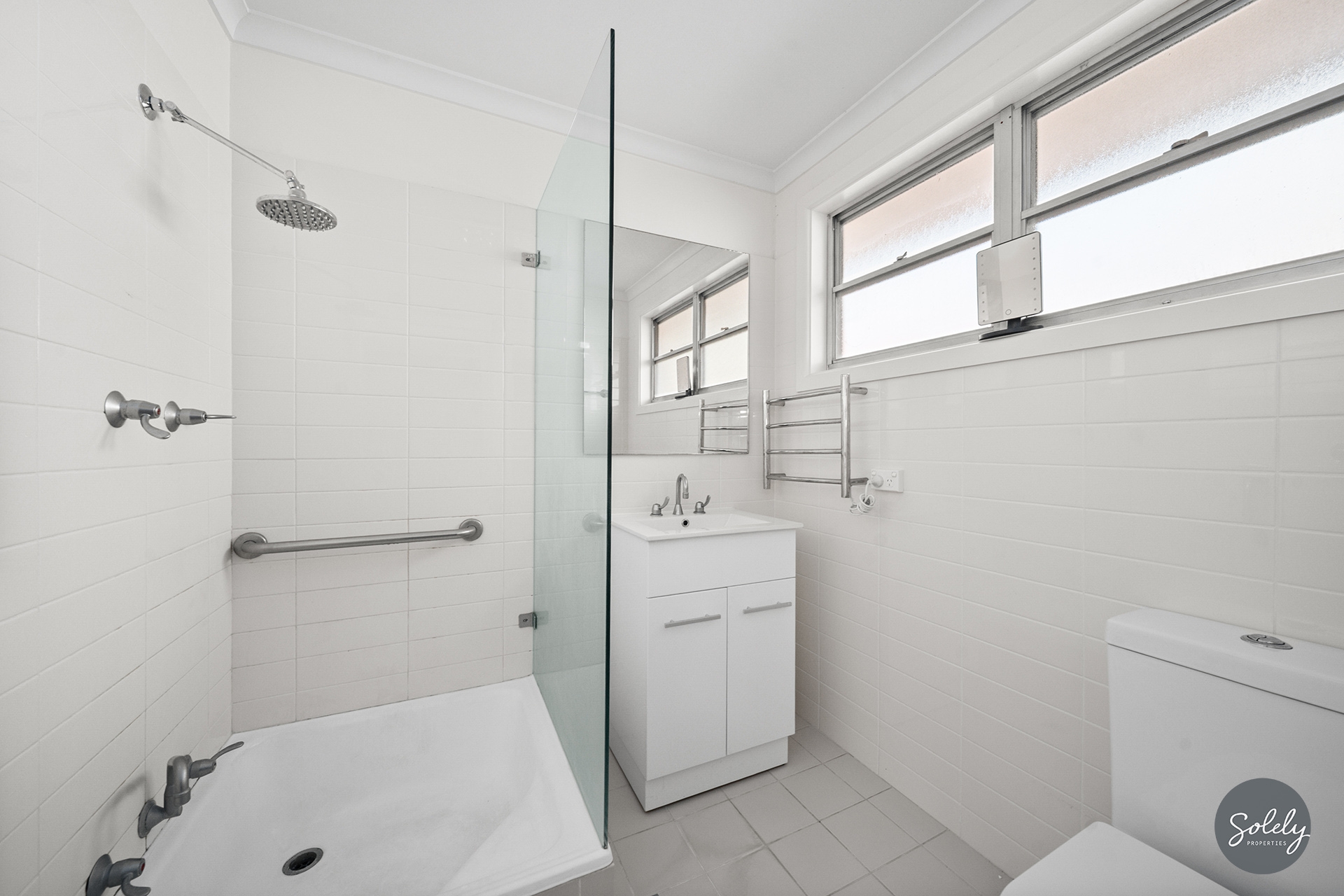 * Renovated family bathroom, ideally placed near the bedrooms, featuring white subway tiling and a glass frameless shower screen