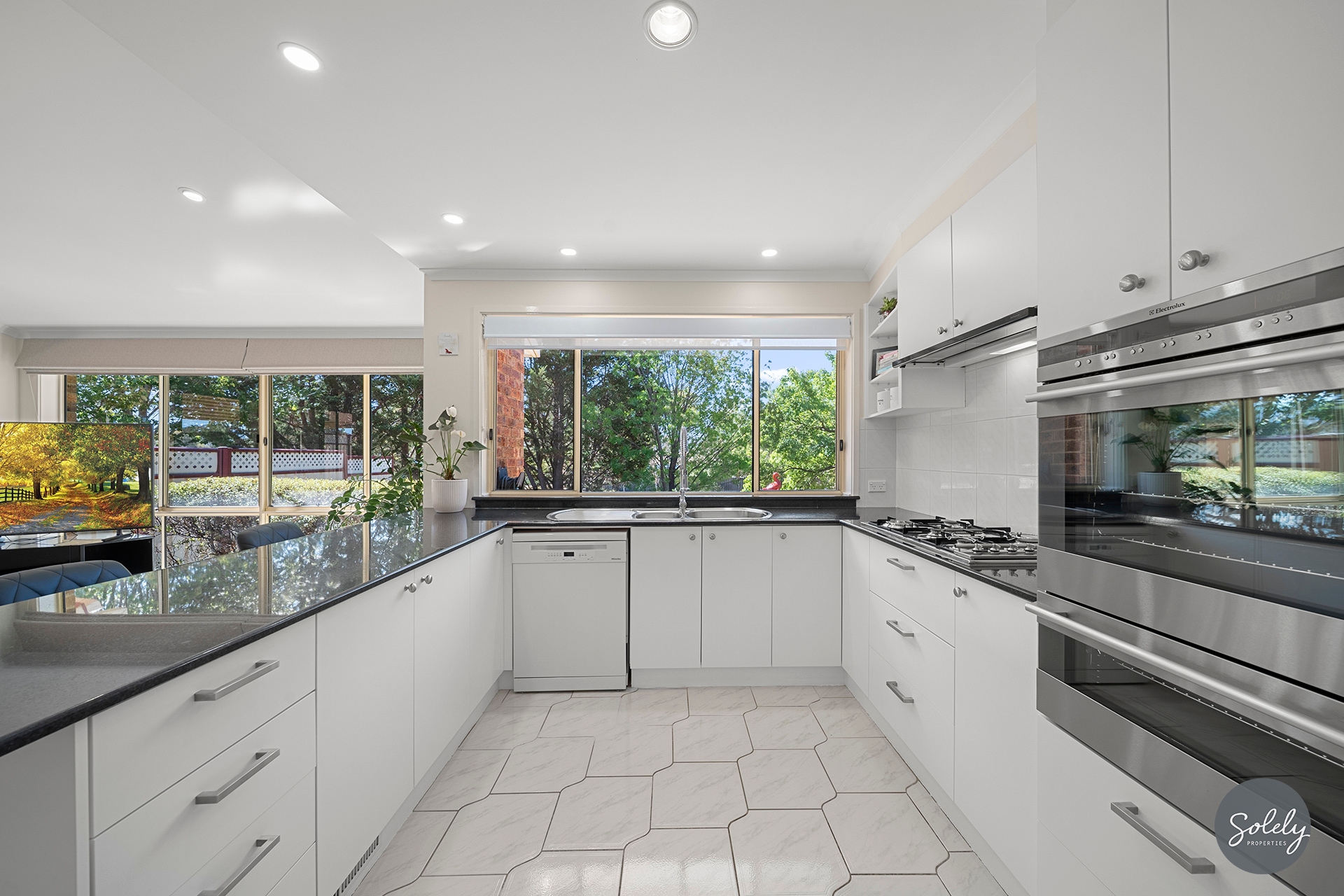 * The gourmet kitchen is equipped with high-quality appliances, including a SMEG gas cooktop, an Electrolux double oven, and a Miele dishwasher. Sparkling granite benchtops add a touch of luxury, while newly refaced kitchen cabinets in white enhance the fresh, modern look. Generous storage, including a large pantry, ensures functionality