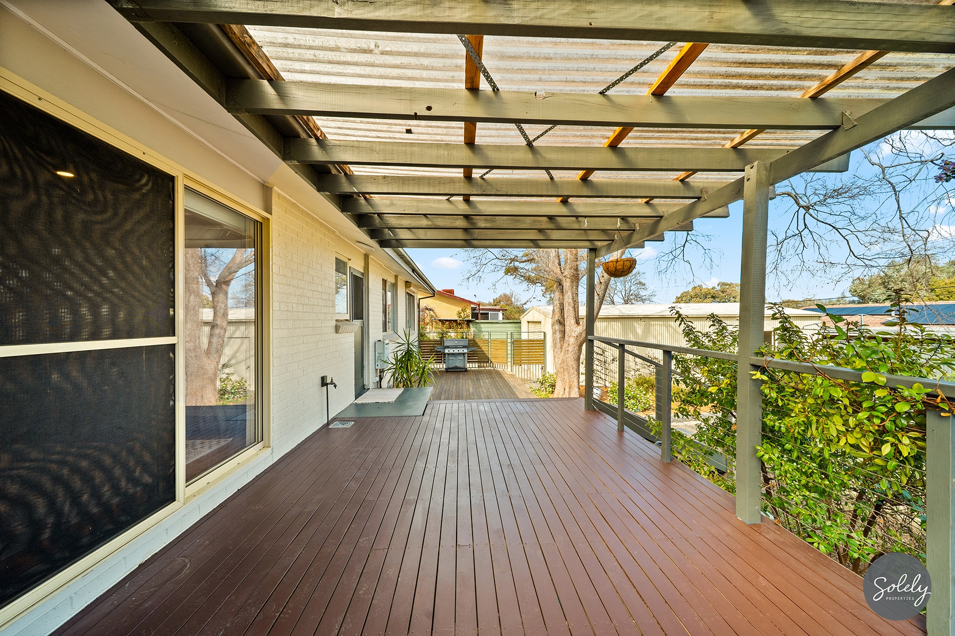 Step outside and you’ll appreciate the thought that’s gone into the outdoor spaces. Wide sliding doors connect to a split-level deck, partially covered to give you separate spots for dining, lounging, or a kids’ play zone. The backyard has a generous grassed area with established plants, secure Colorbond fencing, and handy drive-through access to the backyard.
