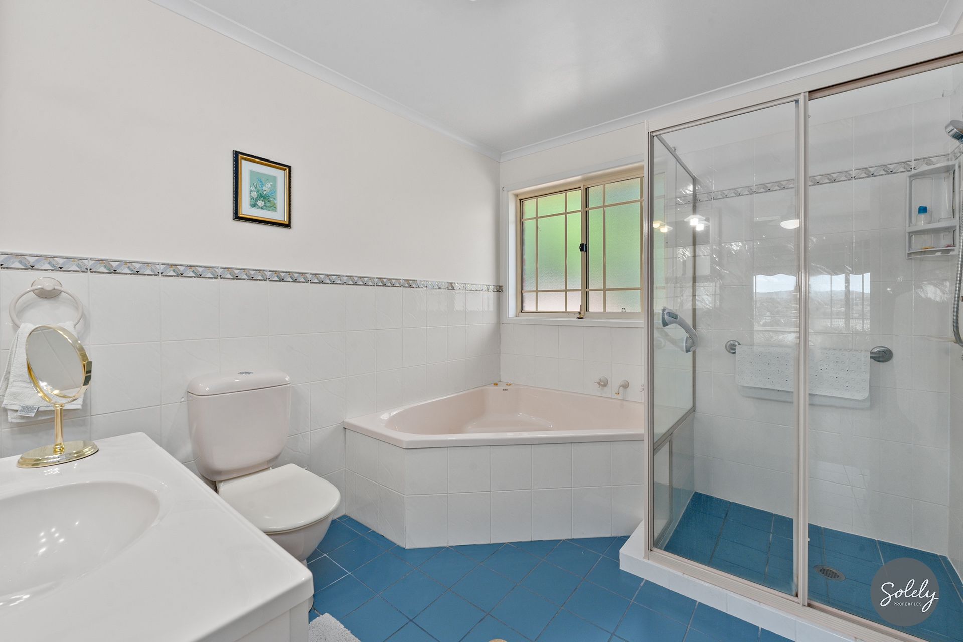 * Generous ensuite featuring a deep corner spa, shower, vanity and toilet