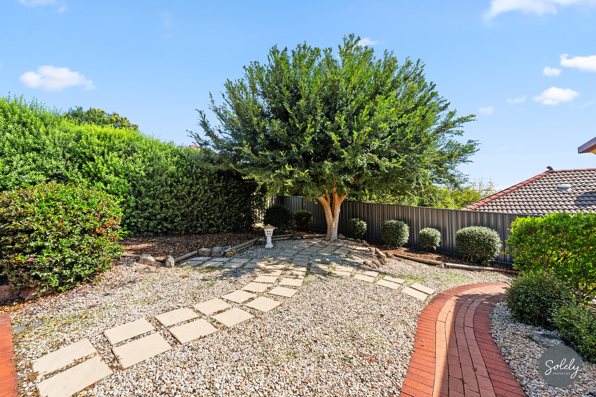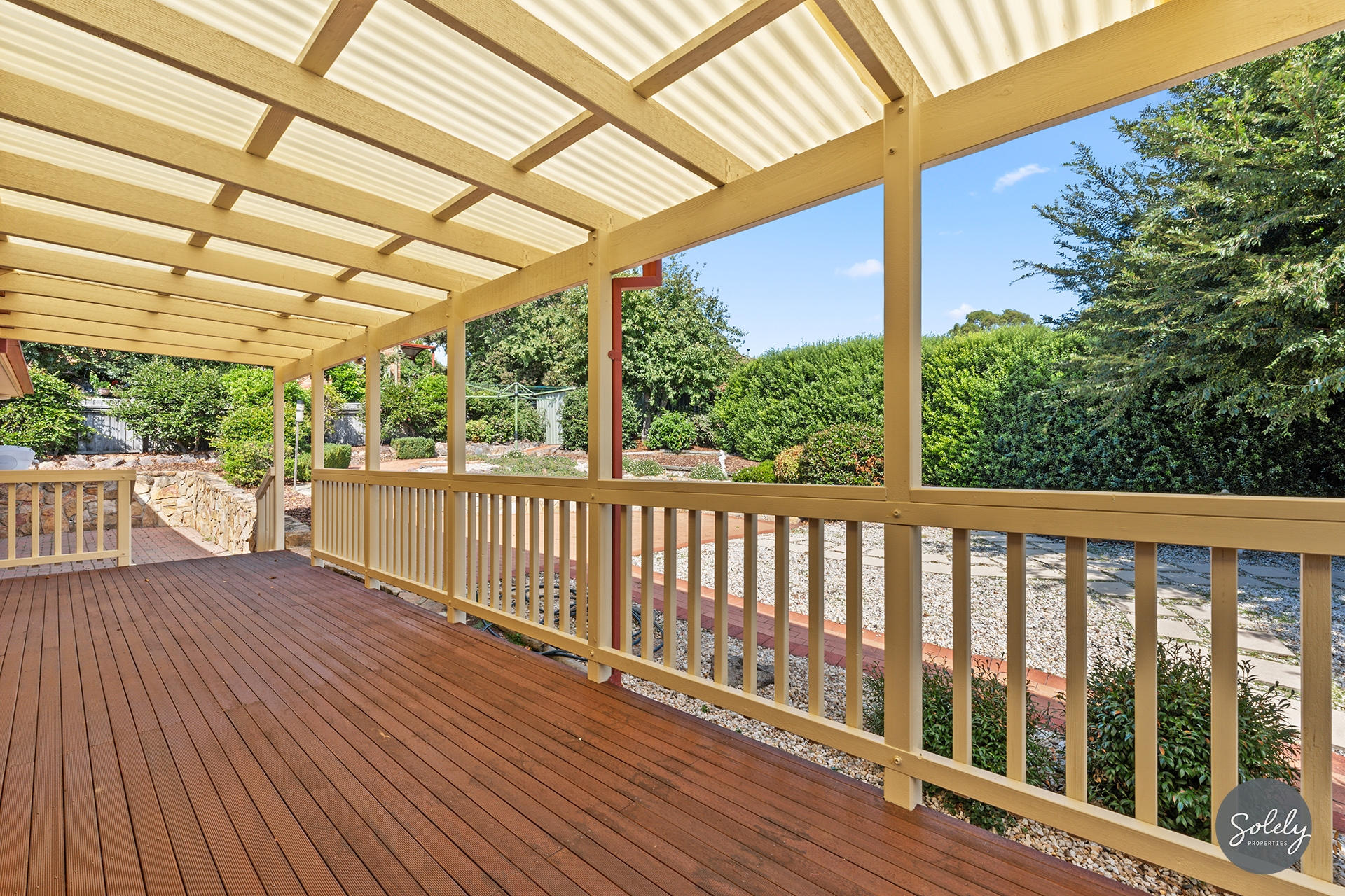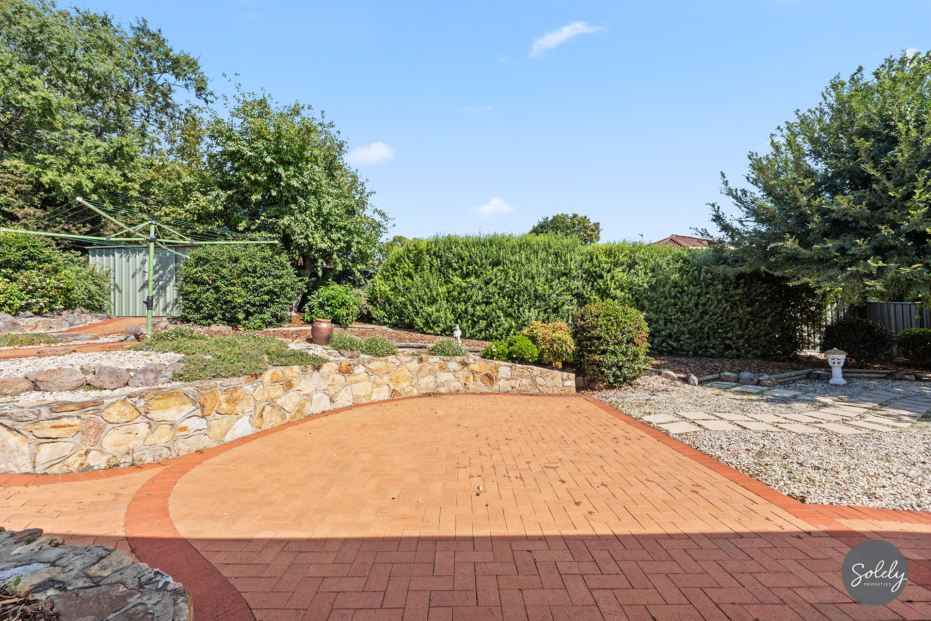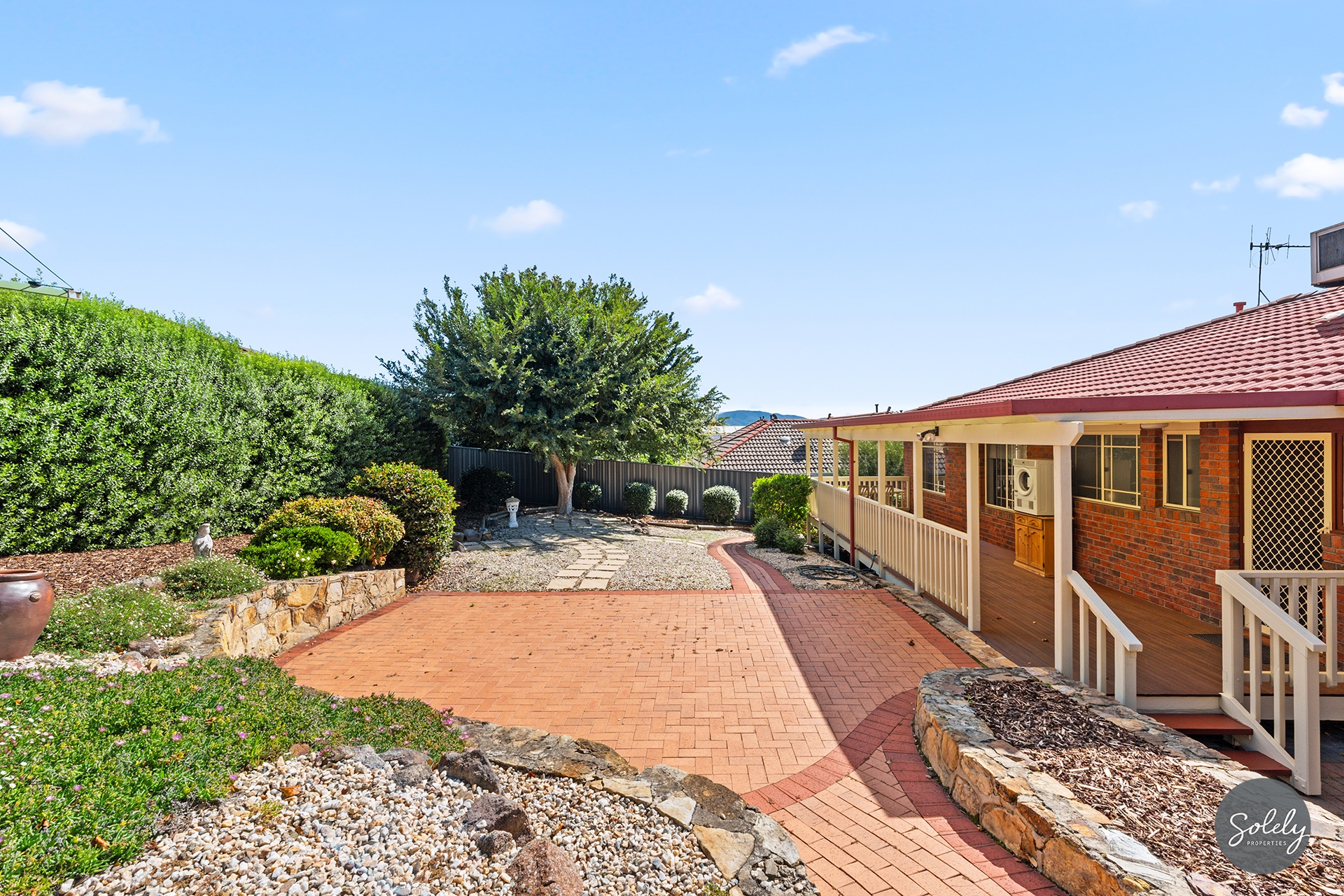 * A stress-free rear garden featuring a covered entertaining deck, paved pathways, and established beds, plus a substantial shed for the hobbyist or extra storage