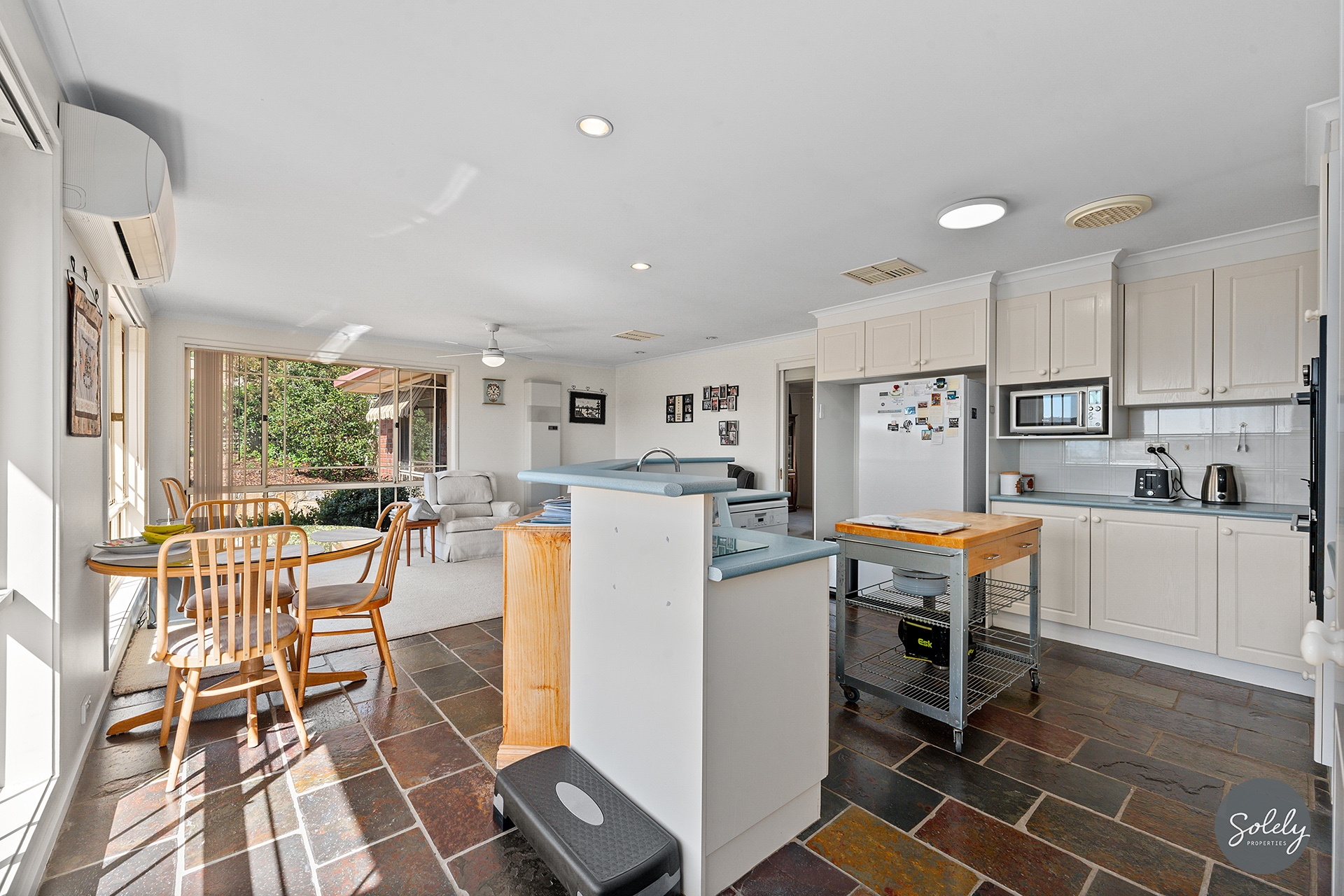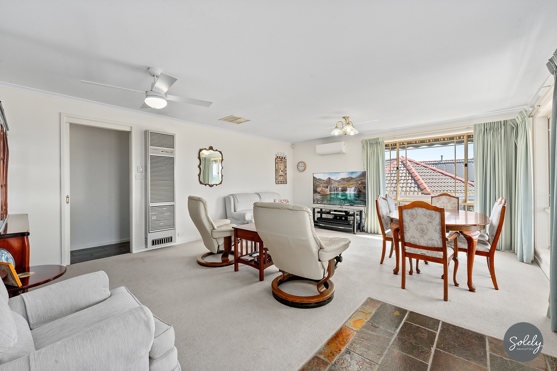 * Thoughtfully equipped for the local climate, combining the natural feel of ducted evaporative cooling, with the targeted power of gas wall heating, and Daikin split-systems in the lounge and the family room