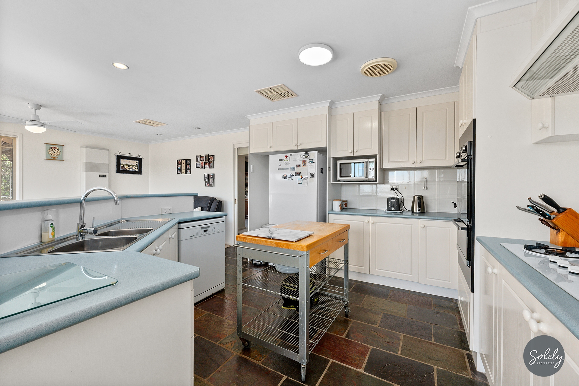 * Thoughtfully designed kitchen combines high-end functionality with a peaceful workflow, boasting a social island bench, premium Westinghouse gas cooking and double ovens, complemented by a Miele dishwasher