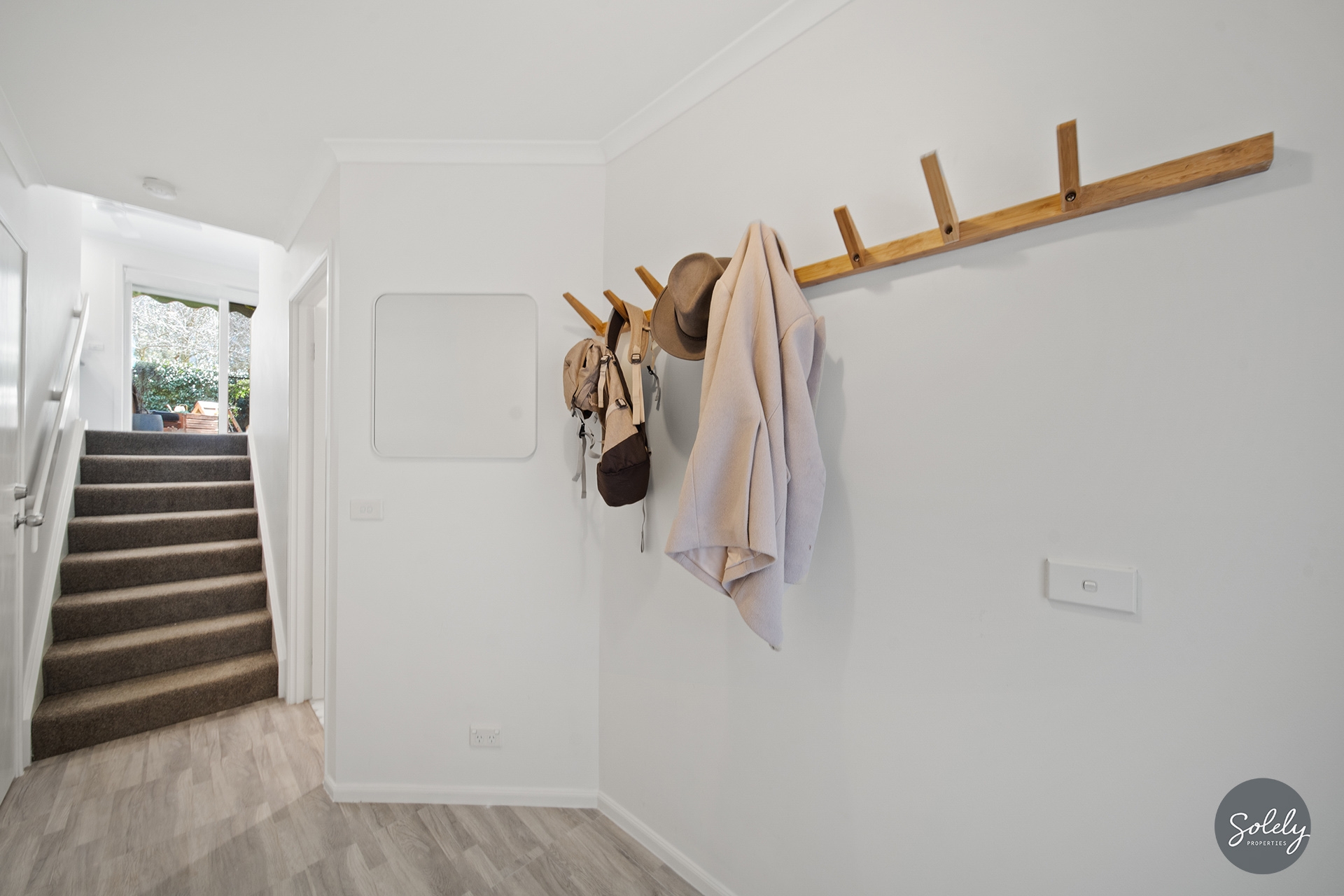 * Entering the home from the front courtyard, the ground level comprises an oversized front door opening to the entryway, the separate laundry, and the internal access to the single lock-up garage with automatic door