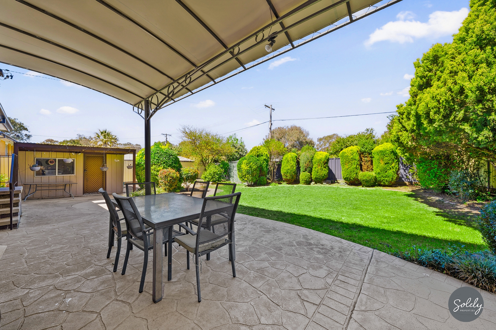Out the back, the secure Colorbond fence encloses a green, established garden filled with fruit trees including lemon, mandarin, and pomegranate, and a lawn that’s easy to look after. A large pergola shades the patio, ready for weekend breakfasts or evening dinners, while a powered storage room and garden shed quietly handle the practical side of things.
