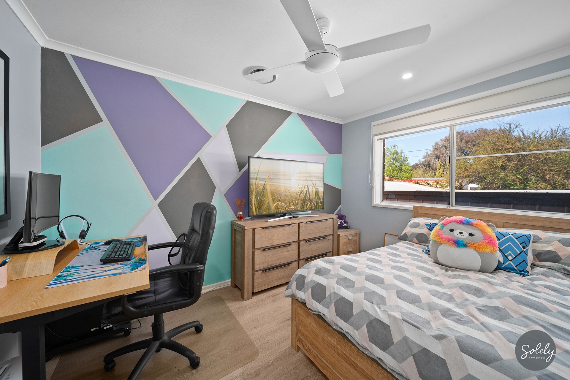 * The spacious main bedroom features a built-in robe, while one of the two additional bedrooms also offers built-in storage. All three bedrooms are fitted with ceiling fans for comfort