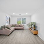 * A lounge room sits at the front of the home, while the open-plan kitchen and family meals area opens directly to the outdoors via sliding door access