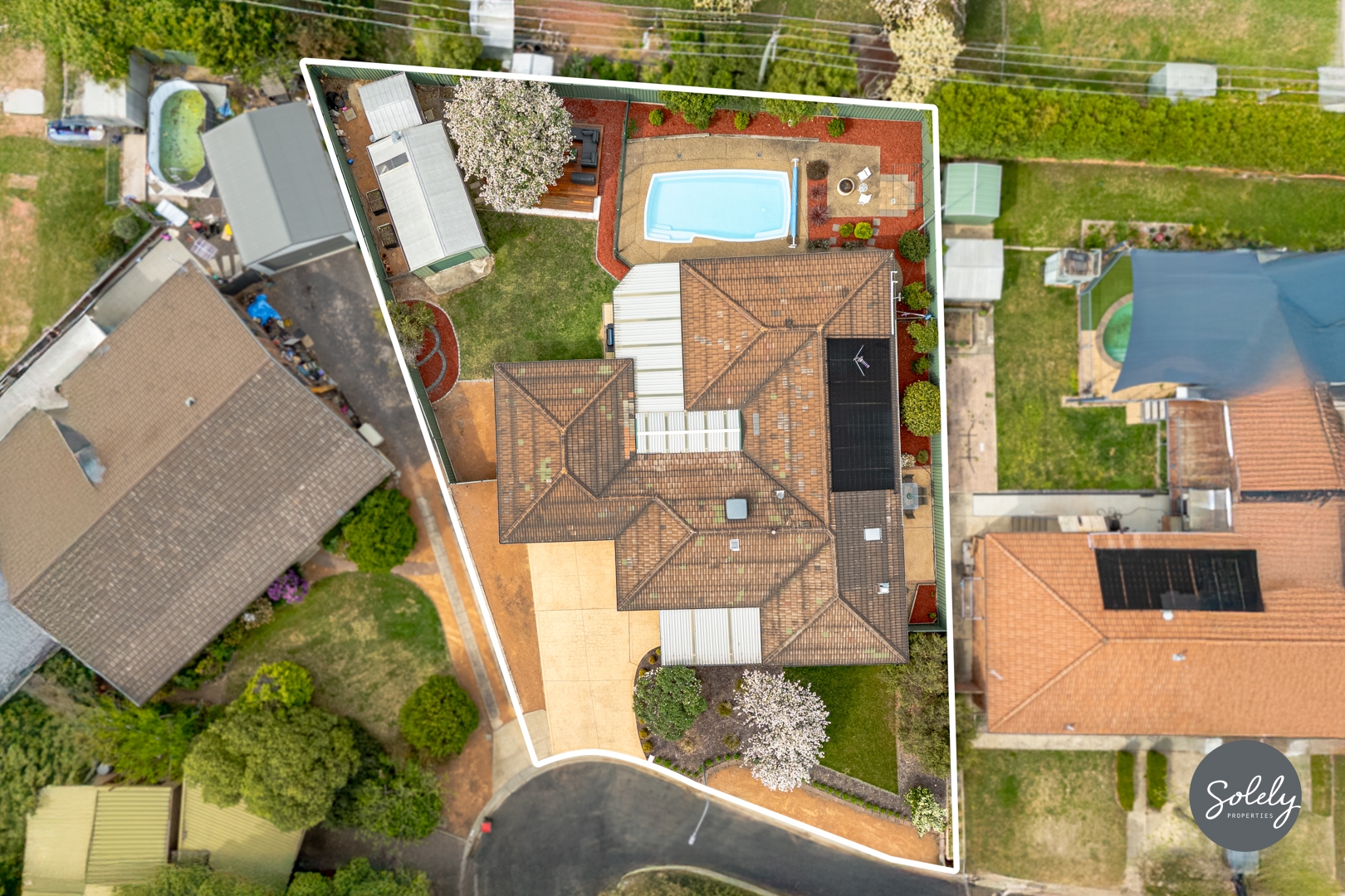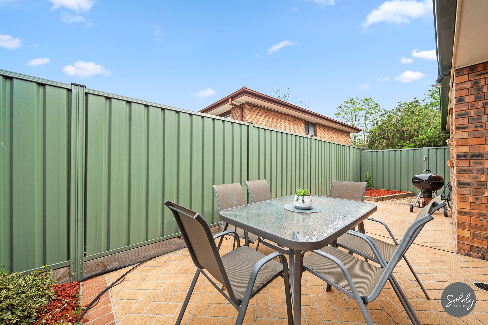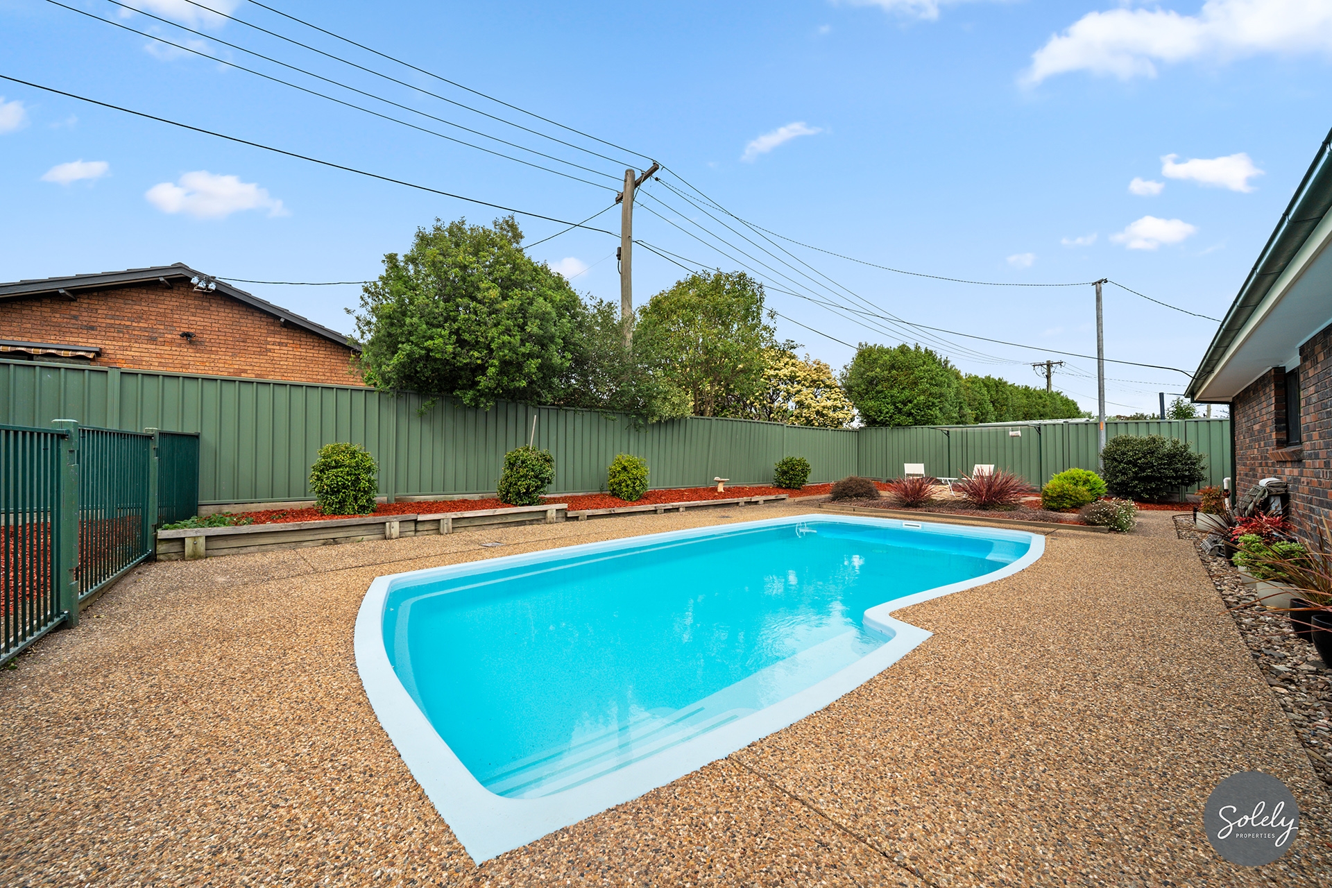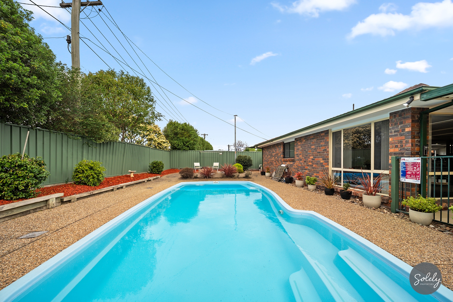 * Beautifully landscaped gardens framed by Colorbond fencing, with mature plants and a large lawn