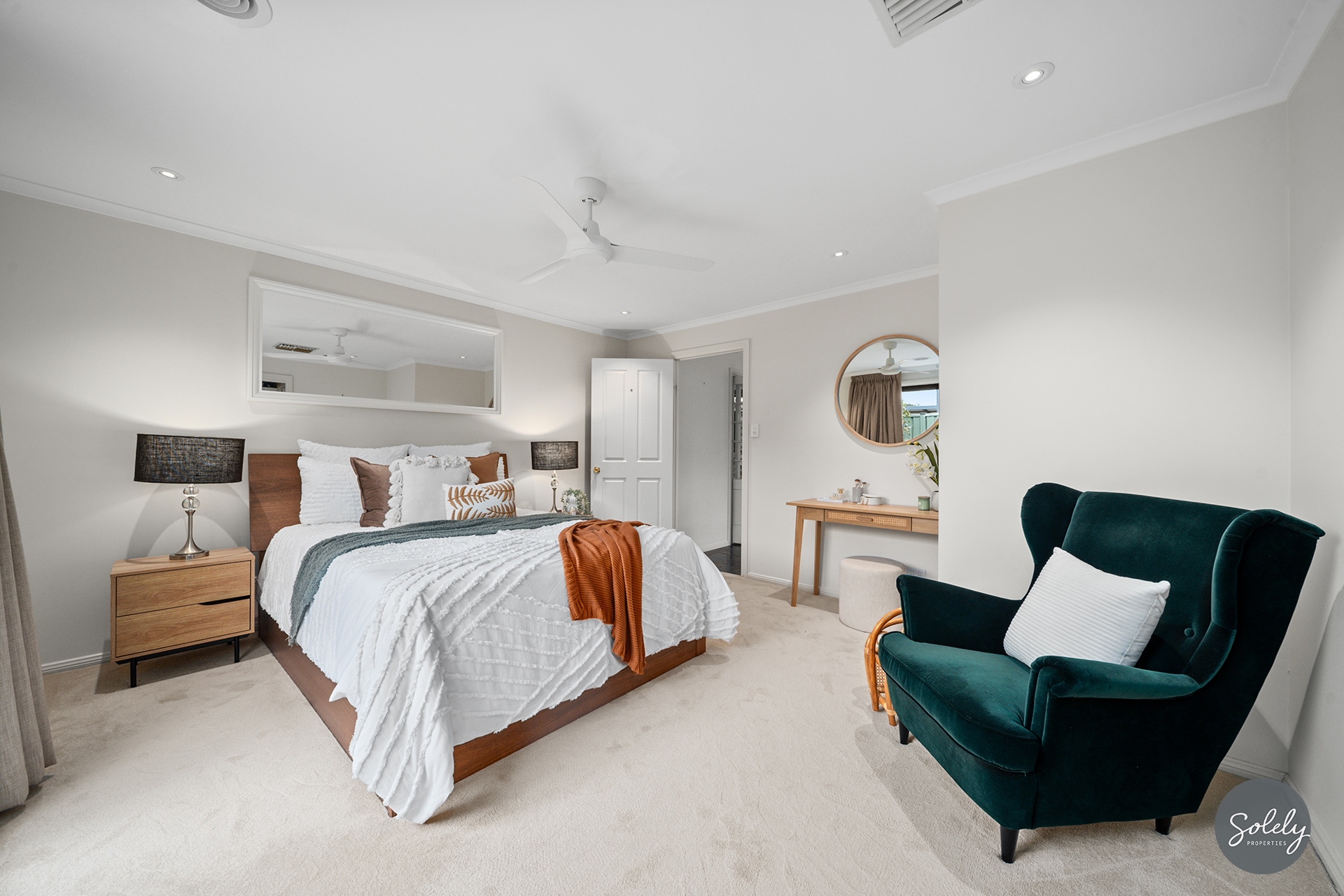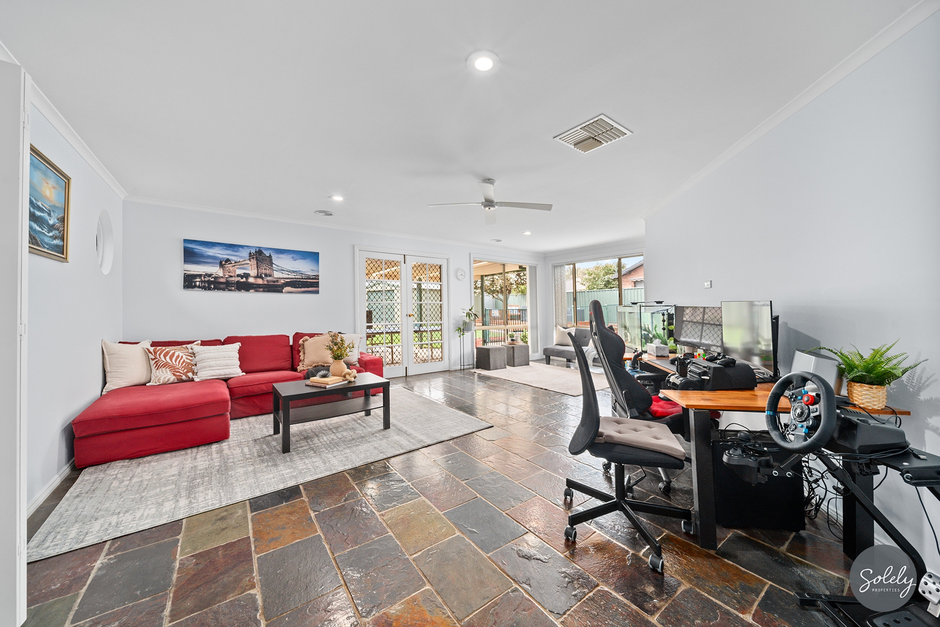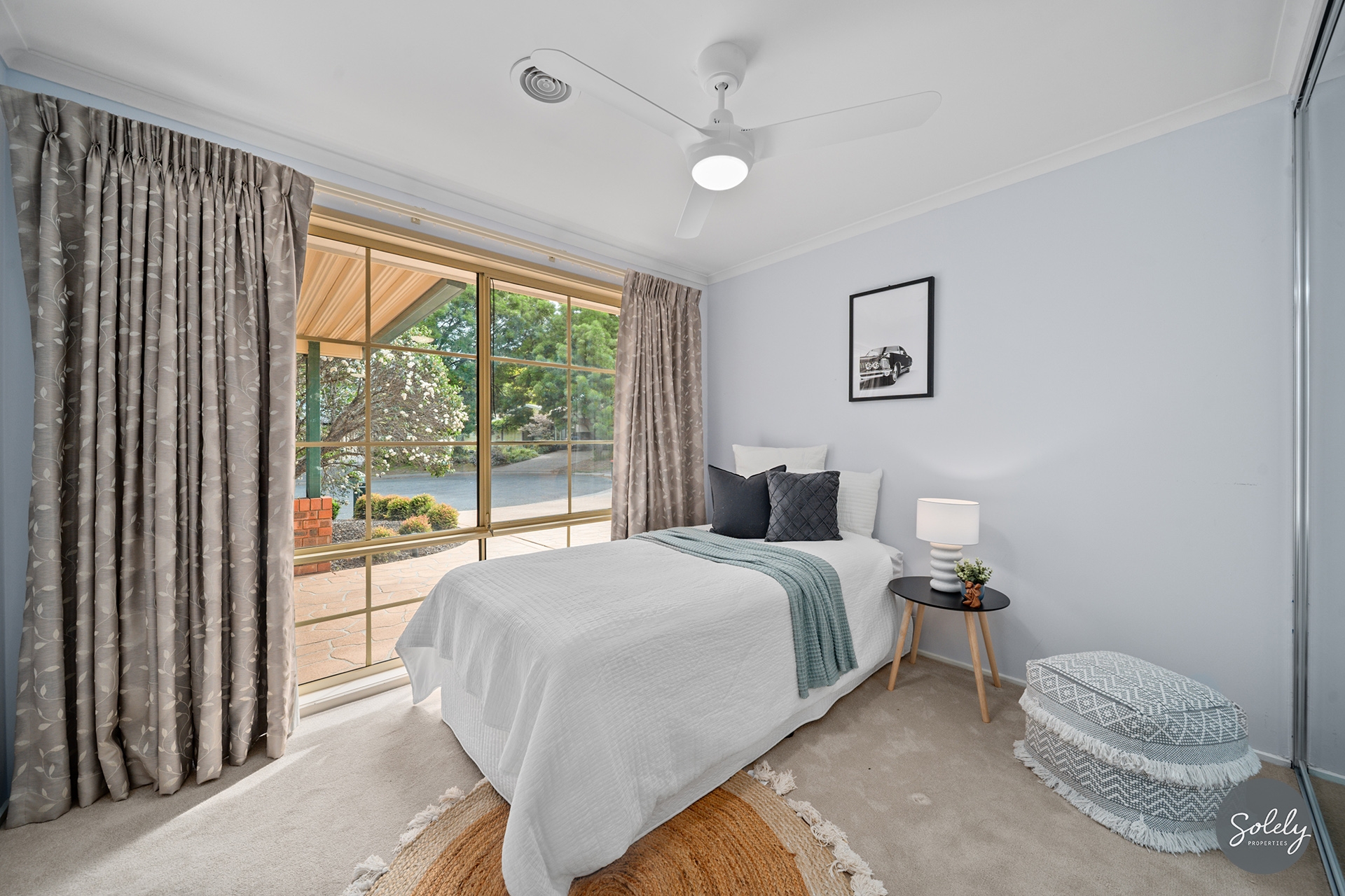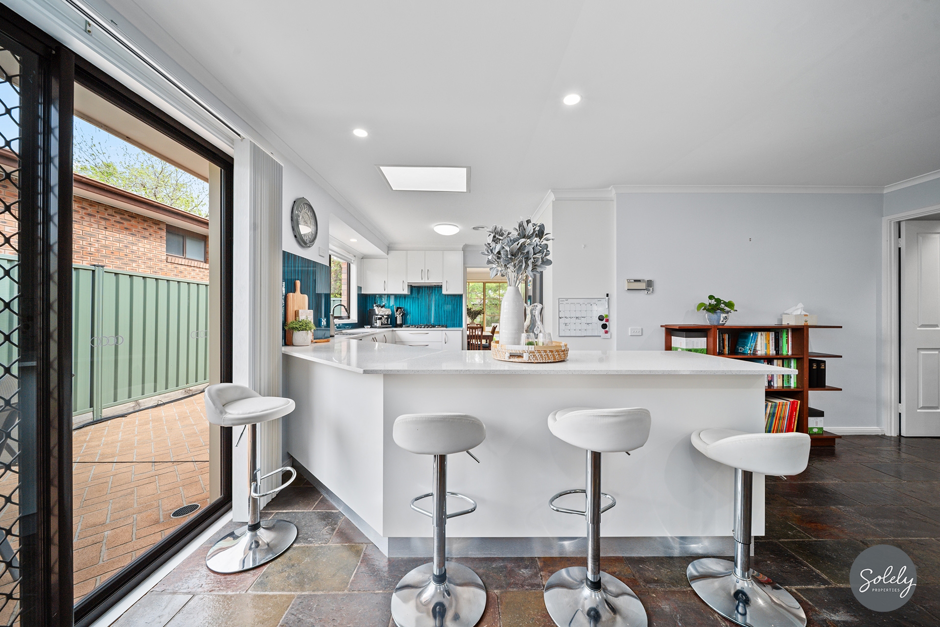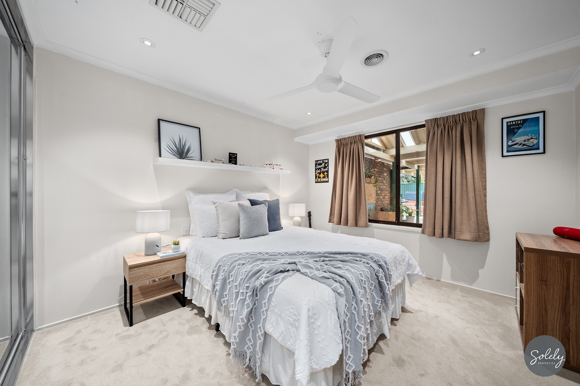 Ducted gas heating, ducted evaporative cooling and ceiling fans ensure a comfortable interior.