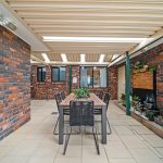 * Generous double garage featuring an automatic panel door, a rear roller door leading to the garden, and covered pergola access connecting directly to the family room